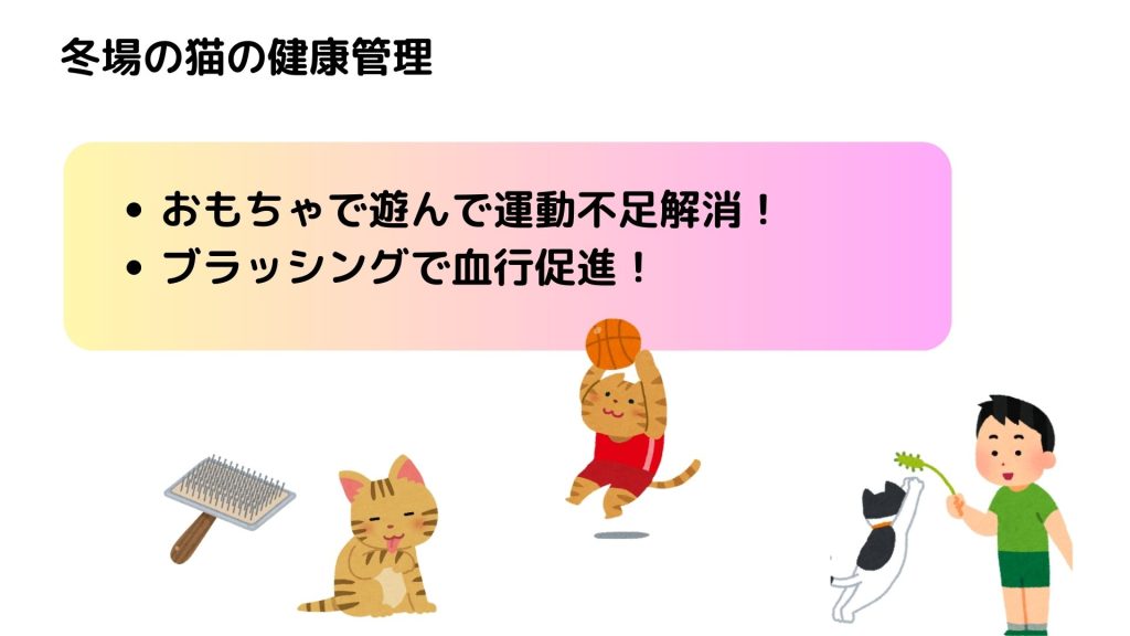 寒さ対策だけでなく、猫の健康を維持するためのポイントも考慮しましょう。