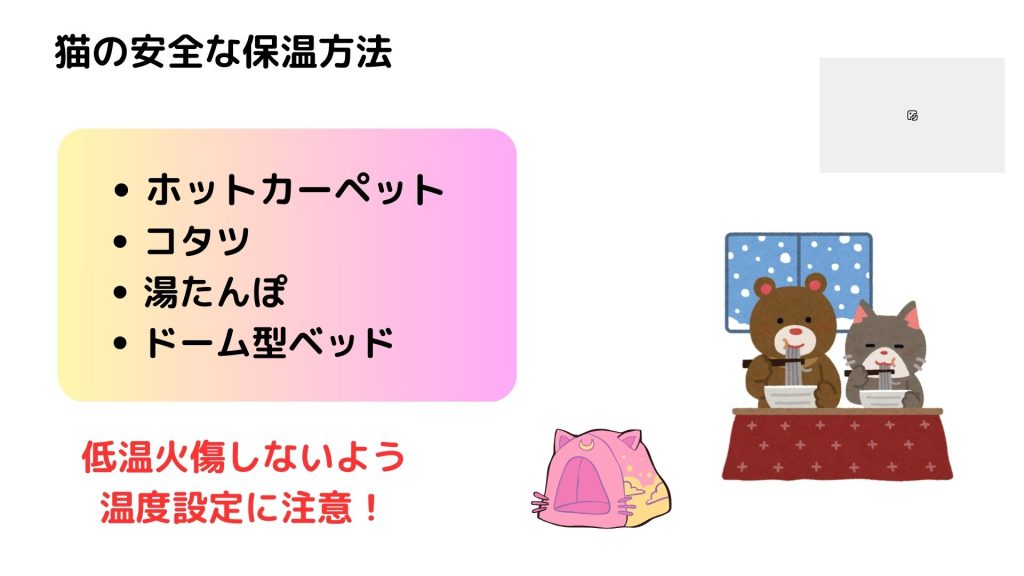 猫は体温調節が苦手で、特に寒い季節には注意が必要です。