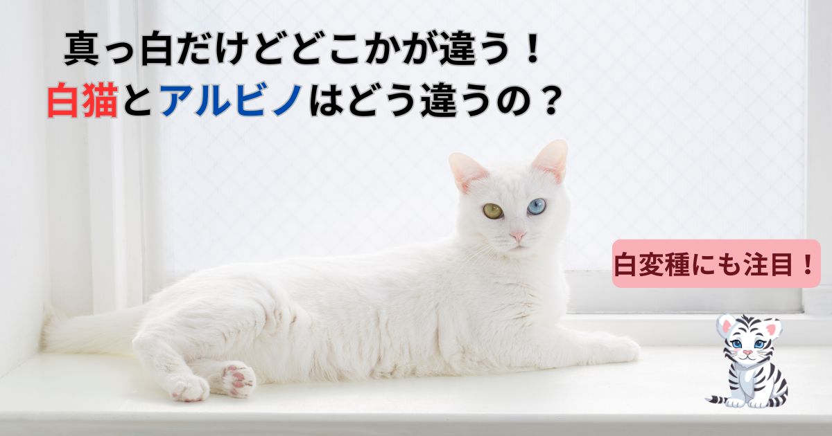 白猫は、白くても色素を作ることができ、アルビノは色素がないため白い毛になるという違いがあります。