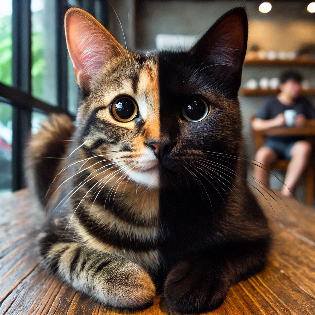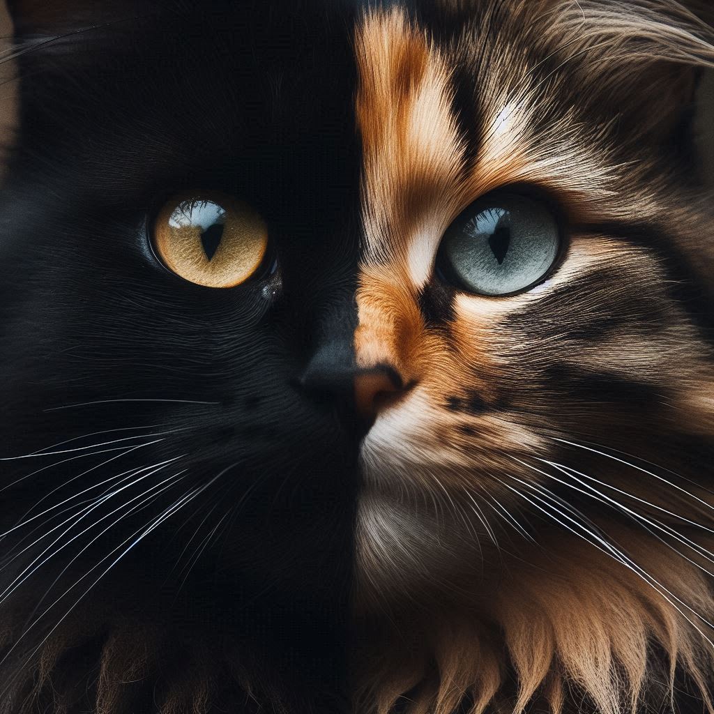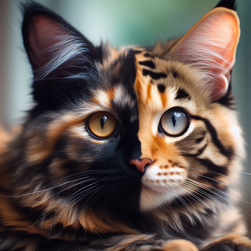 猫の場合、顔の片側に異なる色や模様を持つことが多く、そのために非常に印象的です。例えば、片側がオレンジ、もう片側が白い毛を持つ猫などがキメラの典型的な例です。